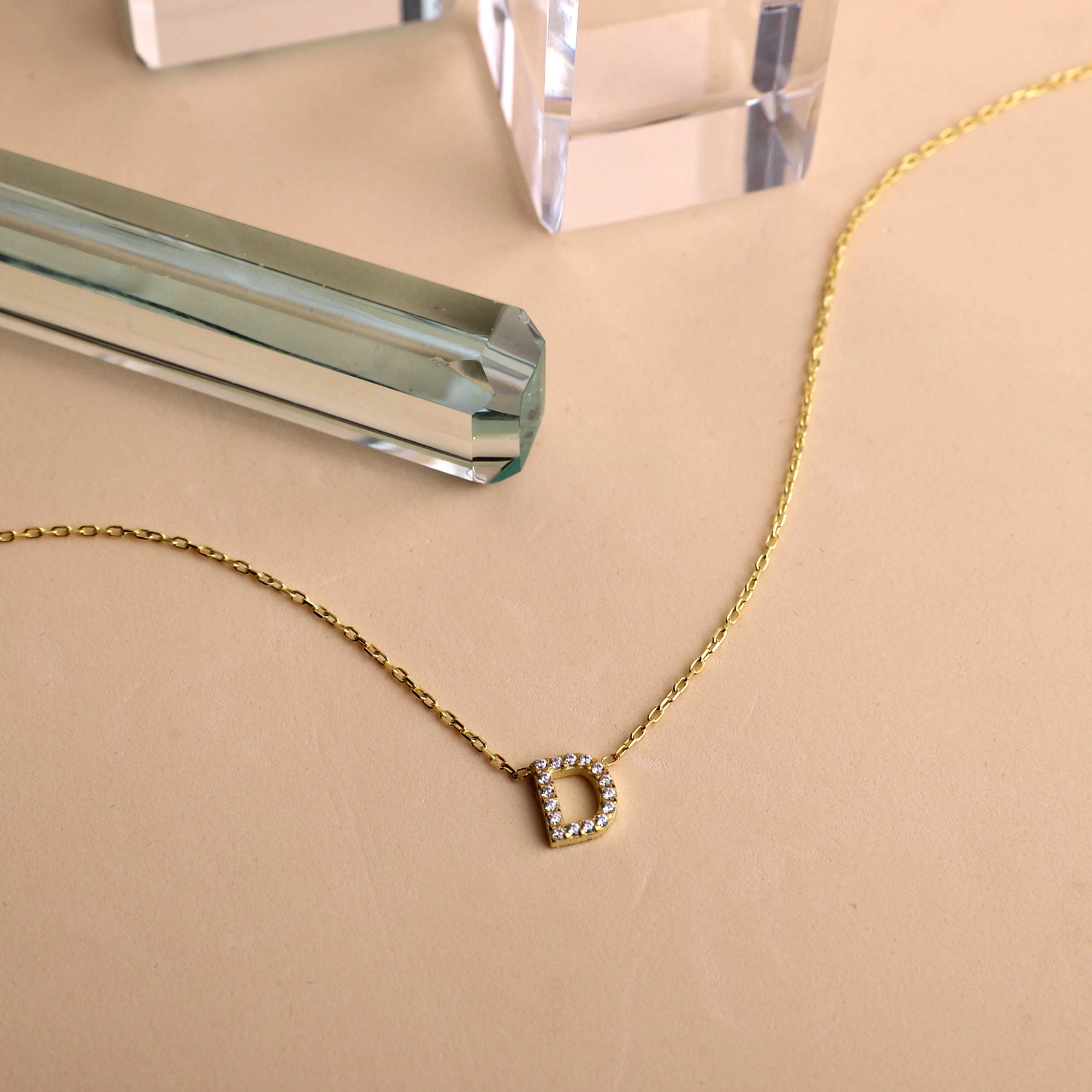 In Bluk Custom Necklaces Jewelry Initials 925 Diamond Cz Cubic Zircon Pendant Initial Necklace Sterling Silver